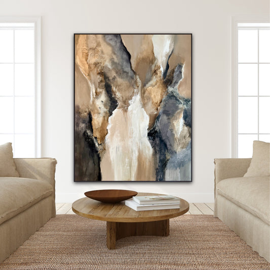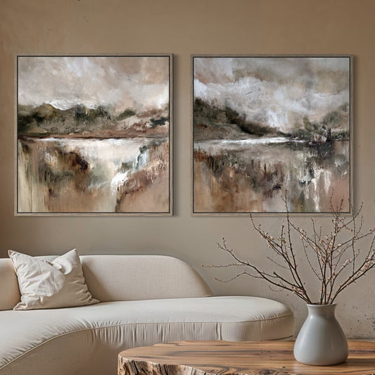 Mine malerier er abstrakte, men jeg er inspireret af naturen og landskabet omkring os. Teknikken har jeg udviklet ved at eksperimentere med forskellige lag af akrylfarver blandet med vand, sand og guld. Jeg brænder for at lave meningsfulde værker som rammer noget i dig.
